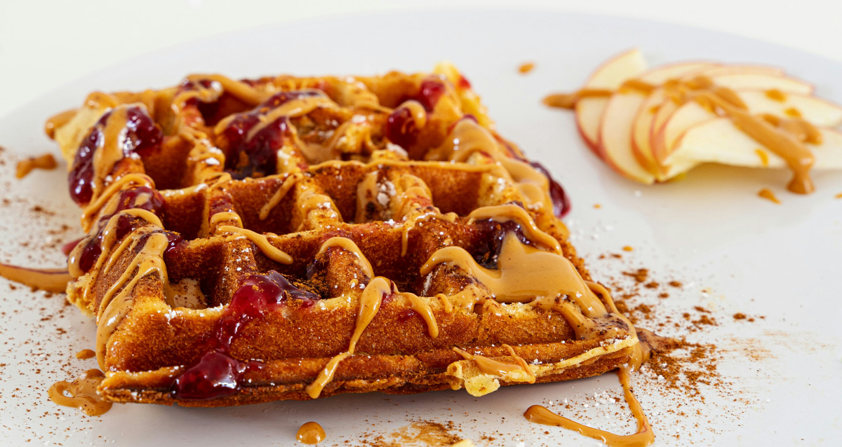 Waffles de maçã e xarope de agave